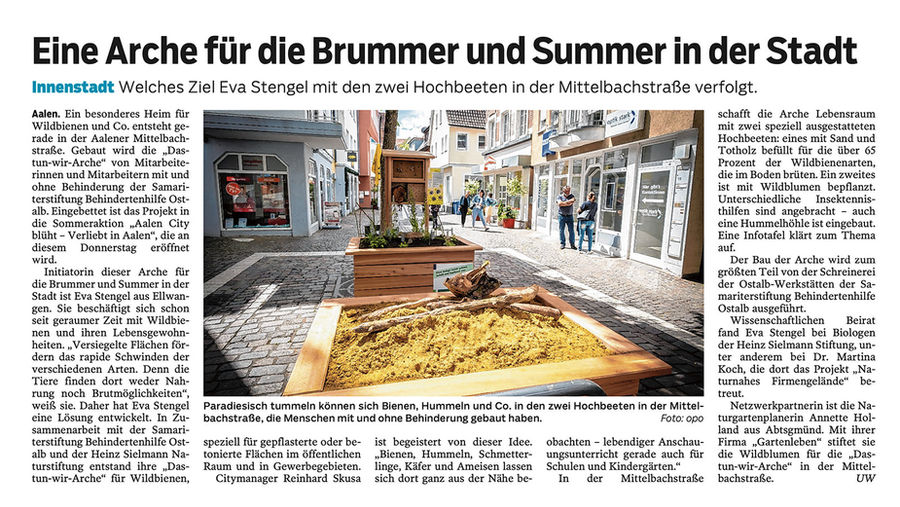 Geeignete Nahrung und Nistplätze finden Wildbienen immer seltener. Vor allem auf versiegelten Flächen benötigen die Tiere unbedingt »Rettungsinseln« – wie die Arche!